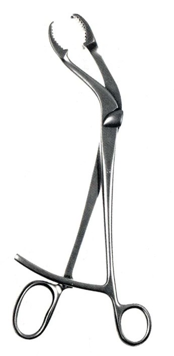 Davier Verbrugge, préhenseur, mors dentés, coudé, 15 cm